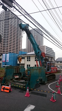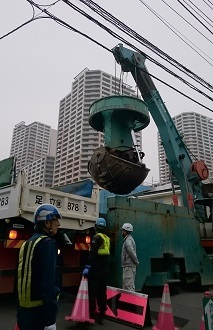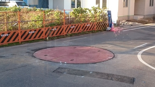 直径3M以上もある大きな管を道路に埋めていきます。